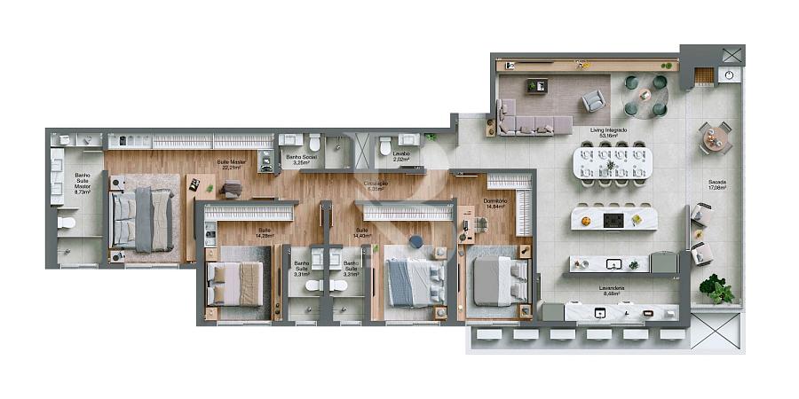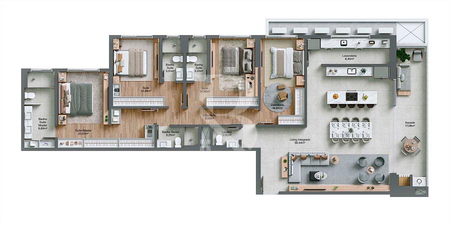 Apartamento frente mar no Águas de Marano com 3 suítes, 199,21m² privativos, sacada no estilo varanda com churrasqueira à carvão, vista definitiva para o mar, a poucos passos do mar, com uma super estrutura de área de lazer e muito aconchego aqui no Águas de Marano, com traços personlisados de projeto autoral trazendo para o Centro de Balneário Piçarras uma linda Joia para abrilhantar ainda mais essa maravilhosa Cidade.
