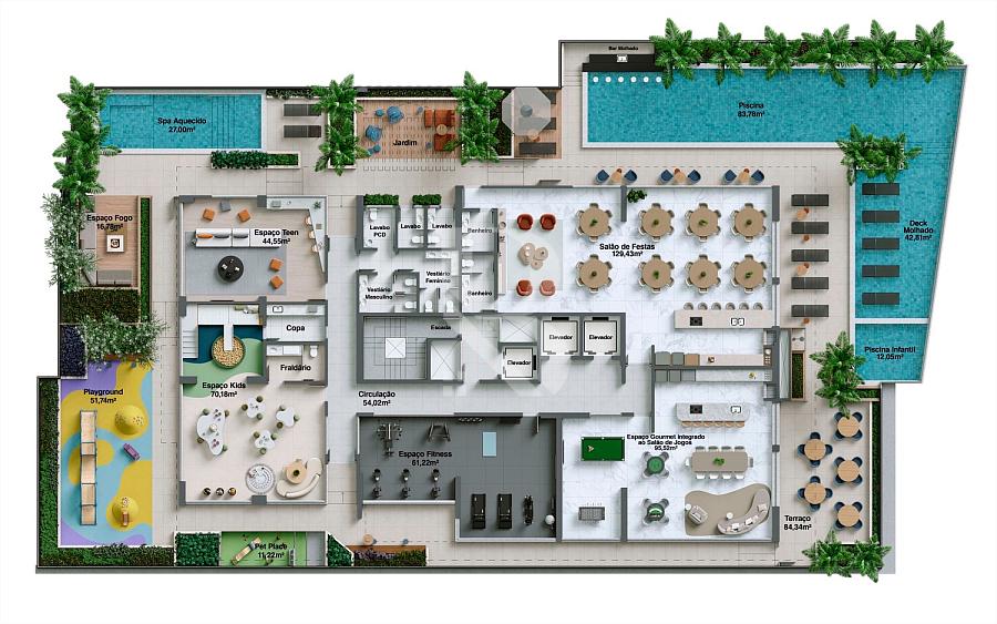 Com uma infraestrutura completa, o Águas de Marano dispõe de áreas de lazer exclusivas, incluindo piscina, espaço gourmet, academia, e ambientes pensados para proporcionar momentos de descanso e convivência. A localização estratégica, em uma das praias mais encantadoras de Santa Catarina, garante proximidade com comércios, serviços e opções de lazer.