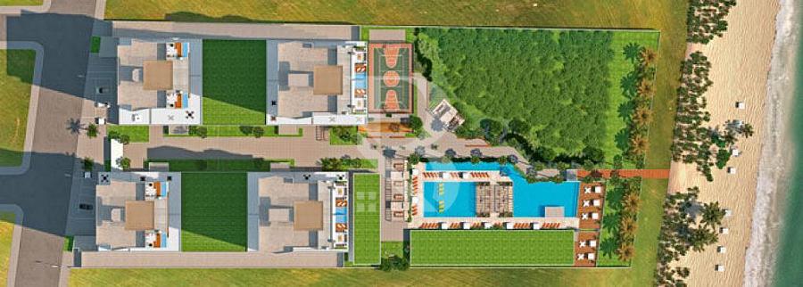 O condomínio está situado em frente à praia, em uma das regiões mais valorizadas do litoral norte de Santa Catarina.