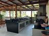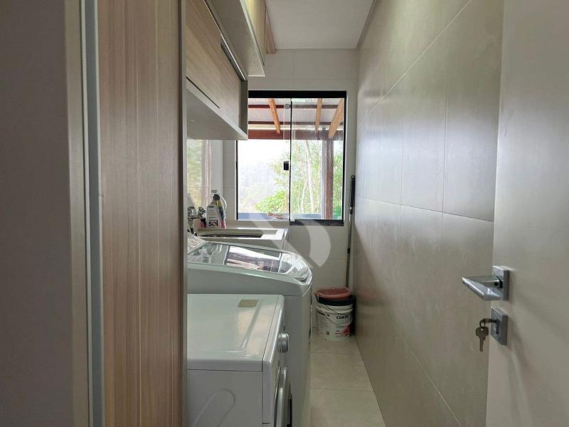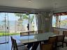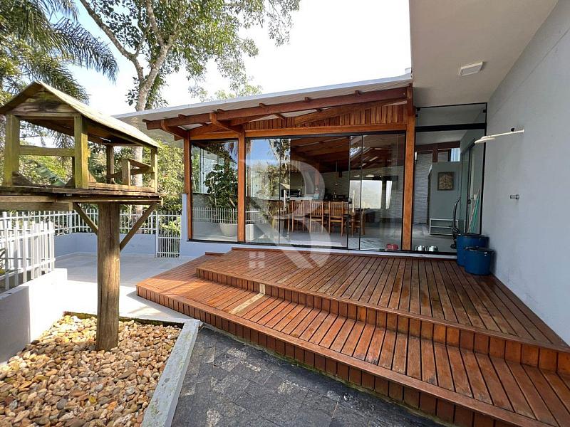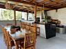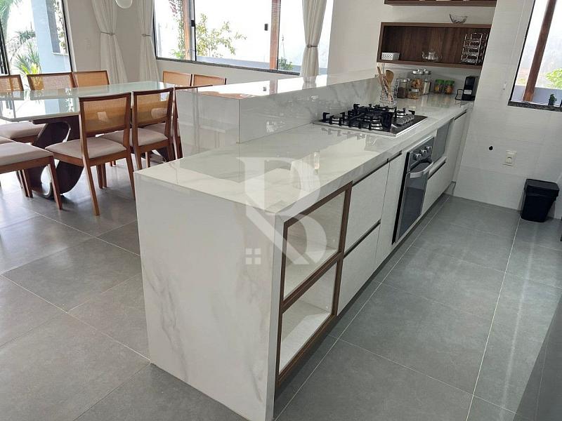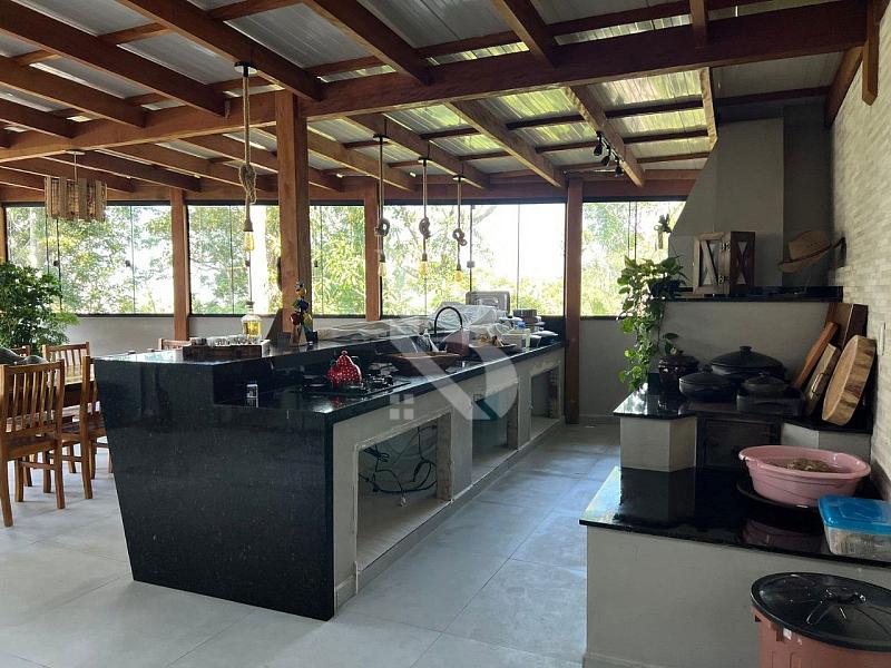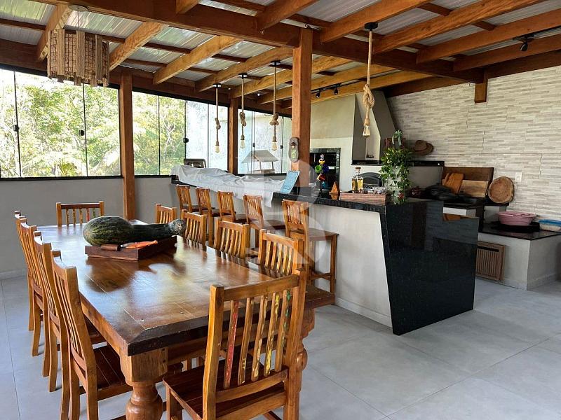 Na área de convivência, a casa conta com um deck de madeira com vista mar, perfeito para momentos ao ar livre. A área gourmet completa possui churrasqueira parrilla, fogão a lenha e bancada em granito, ideal para quem valoriza experiências gastronômicas com estilo e autenticidade.